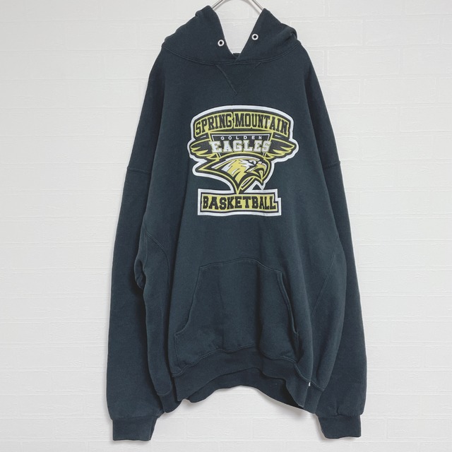 【USA古着】Russell ラッセル パーカー 黒 ブラック スクールロゴ バスケットボール 2XLサイズ ゆるだぼ 90s 00s Y2K メンズ